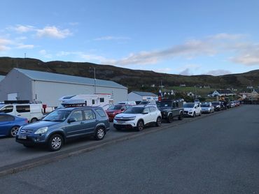 Once over the bridge, we drove past the ever-impressive, never-less-than-scary Black Cuillins, and made our way to Uig, joining the boarding queue for our (and Martin's) ferry to Tarbert on the east cost of Harris. I think you can see from my face that I was beginning to feel the novelty of our early morning start wearing off.
