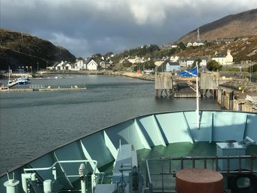An hour after departure, we arrived in Tarbert Harbour to be greeted by the sight of the new Harris Distillery buildings, their white walls gleaming under ominous autumn cloud at the head of the inlet.