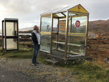 If only to prove that Martin was not making it up, I include below a shot of the phone-box-turned-tourist-information-office that sits just a couple of miles south of the village, and one of the brightly painted yet somewhat incongruous bus shelters that appear along the route.