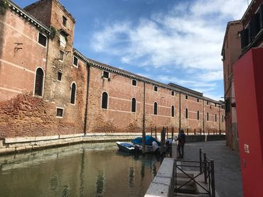 It's hard to gain access to the inner docks and wharves of the complex, as the site has been taken over by Biennale museum exhibits, and the unapologetic cordoning off of acres of real estate by the Italian military. But it's still possible, walking around the southern and western flanks of these huge walls, to imagine the place energised by thousands of workers drawn from the city, and the nearby houses surrounding the complex.