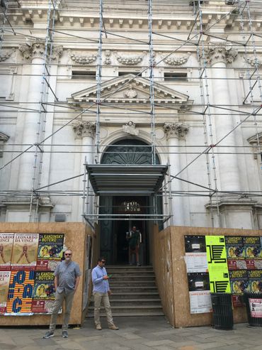 The buildings surrounding the square, including the church that Malin stands in front of as he waits for his co-conspiator, are pretty impressive examples of mid-Renaissance urban architecture, retaining all of their grandeur despite, in this case, being repurposed as a cinema and wrapped in a layer of scaffolding.