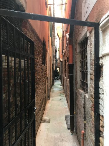 In our subsequent attempt to follow in Malin's footsteps from this point, we headed off in the direction of the building where Soranzo and Malin have a serious discussion about the state of their plans. We were fine when it came to finding the Ponte Dei Fuseri, but managed to seriously lose our bearings when confronted with the narrow intersecting alleys that lay between the bridge and his safe house.