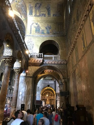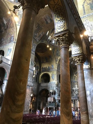 The four horses sitting above the entrance to the Basilica, while only replicas of those that stood at ground level at the time of Lucia and Malin's visit, speak to a chain of history from Rome to Constantinople to Venice, to Napoleonic France and then back again (look it up - their history is fascinating in their own right - it's as though they've galloped through both countries and the sands of time). As an aside, the original sculptures were displayed for centuries in the Roman Hippodrome in Constantinople, a place known to Malin from his visits to the city, made as part of his trading voyages the the East.
